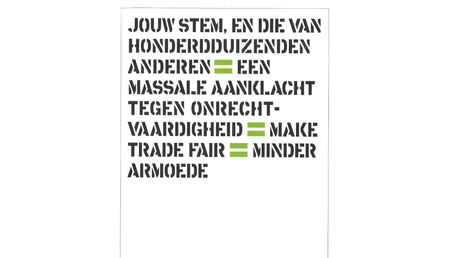 Boeren in ontwikkelingslanden wel. Veel internationale handelsregels zijn oneerlijk en in het voordeel van het rijke westen. Daarom start in 2002 de internationale campagne Make Trade Fair. Oxfam Novib vraagt aan bedrijven, overheden en consumenten om hun verantwoordelijkheden te nemen.