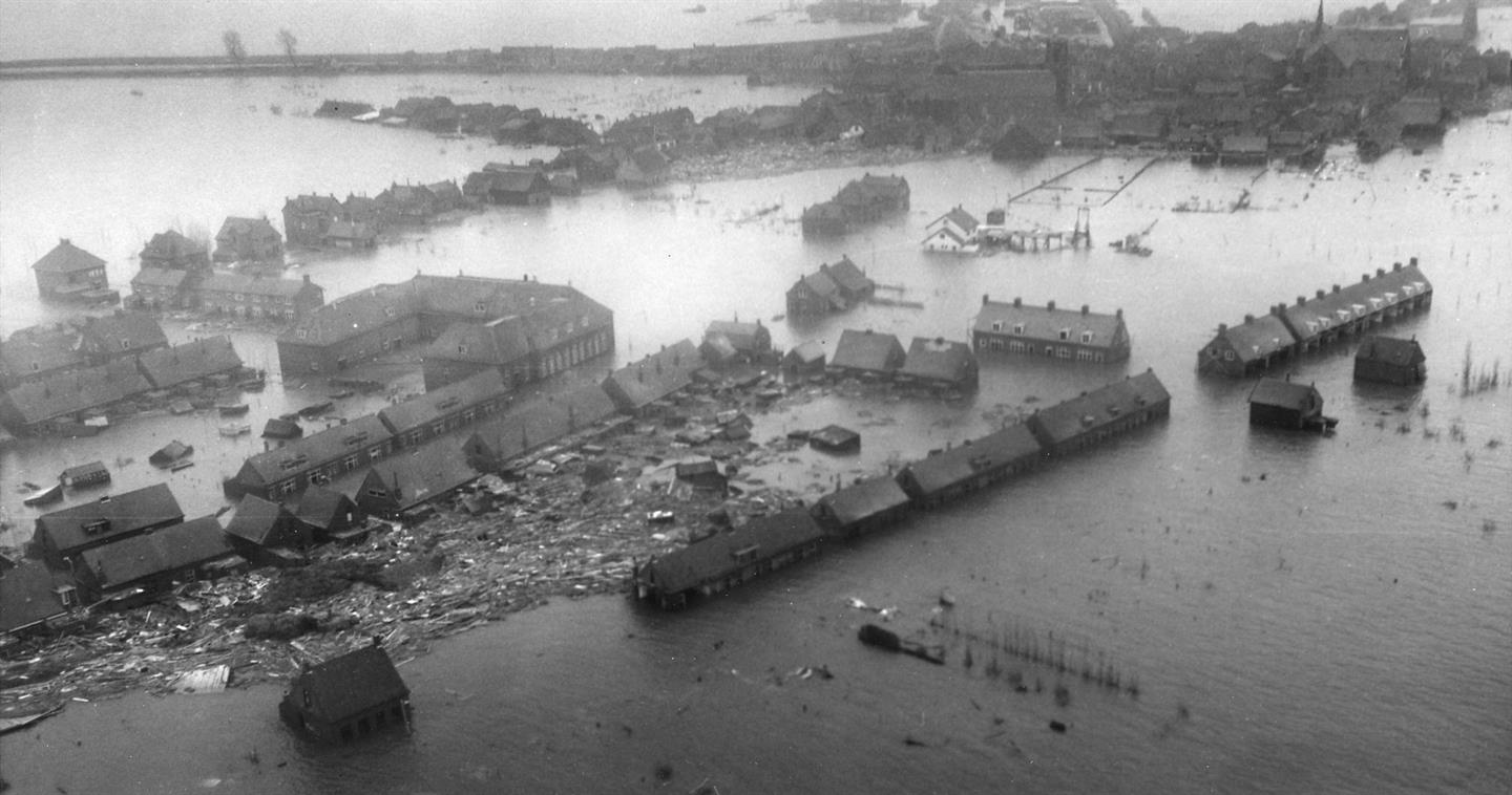 In de nacht van 31 januari 1953 stijgt het water van de Noordzee tot gevaarlijke hoogtes door een zware stormvloed gecombineerd met springtij. Tal van dijken in Zeeland, Zuid-Holland en Noord-Brabant breken. Ruim 1800 Nederlanders komen om het leven, 100.000 mensen zijn hun huis en bezittingen kwijt.