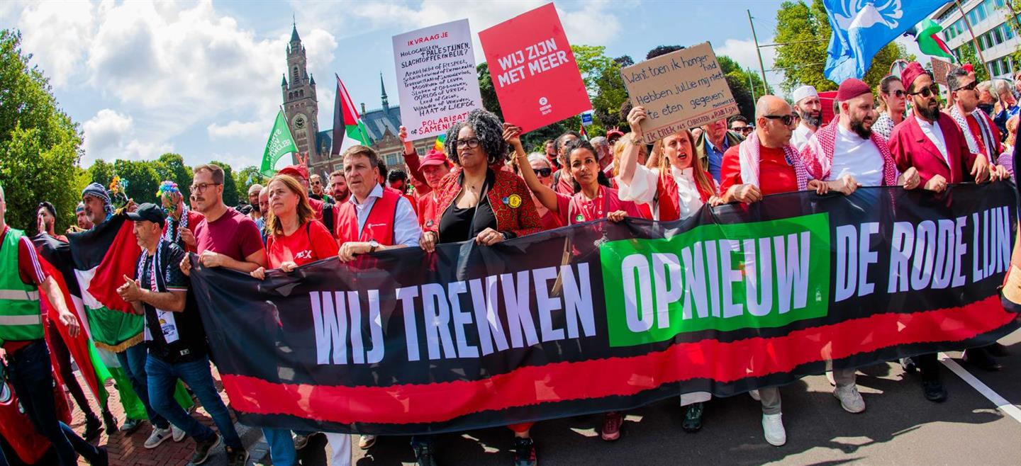 Vandaag kleurde het centrum van Den Haag rood: meer dan 150.000 demonstranten gingen massaal de straat op om te protesteren tegen de aanhoudende Israëlische aanvallen op Gaza en de Nederlandse steun aan de Israëlische regering. De demonstratie, vreedzaam en indrukwekkend in omvang, vormde volgens de organisatoren een historisch moment van solidariteit, urgentie en morele duidelijkheid.