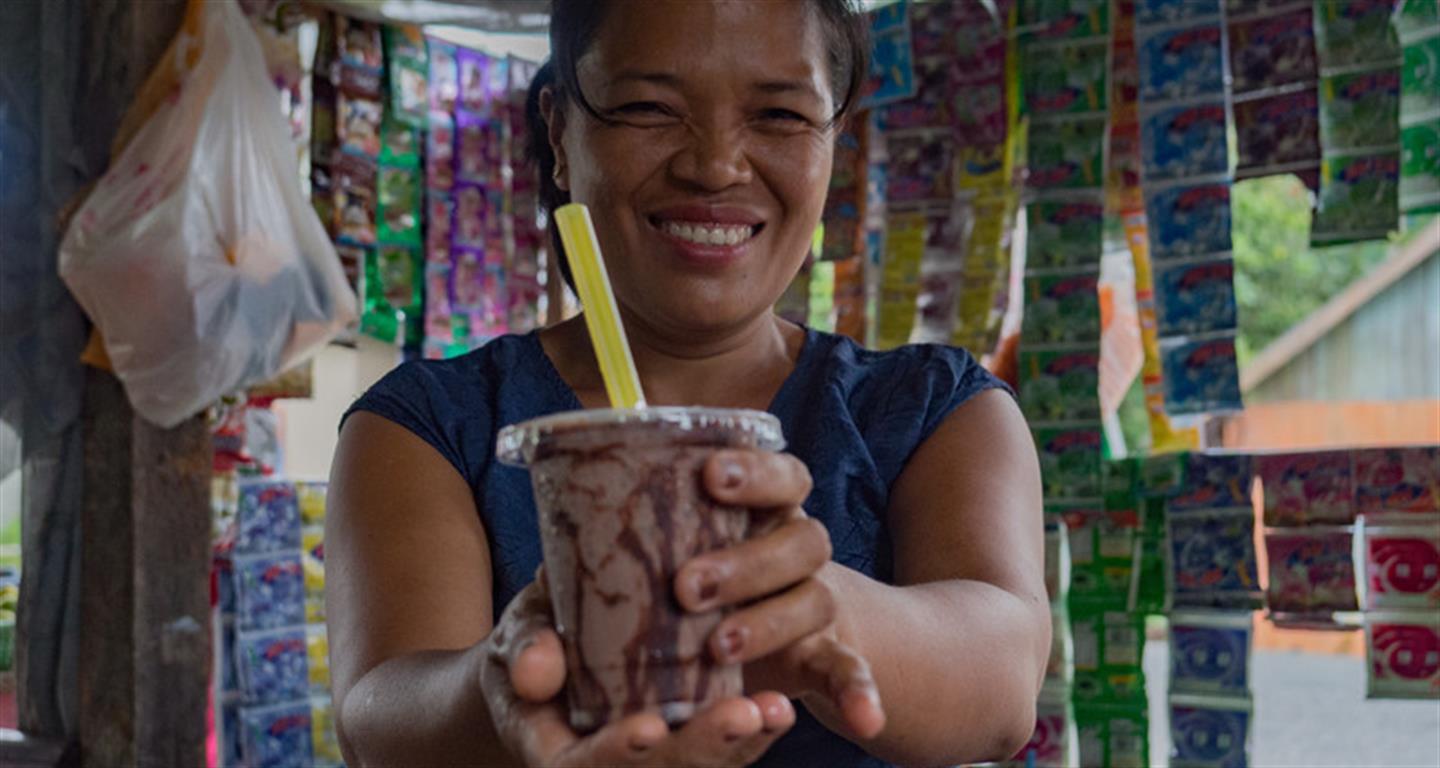 12 maanden na de verwoestende aardbeving en tsunami op Sulawesi, runt Salma een bloeiend eigen bedrijf.